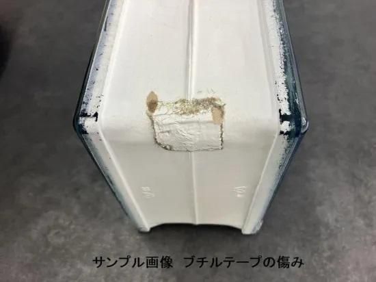 ガラスブロックの側面に穴を開け、内部に塗料を入れ着色しています。その穴はシリコンで封止され、その上からブチルテープが貼られています。長期保存により、ブチルテープに劣化が現れており、ブチルテープの見た目は損なわれていますが、施工後は隠れる部分になるため、カラーのガラスブロックをお探しの方にはお得な商品となります。